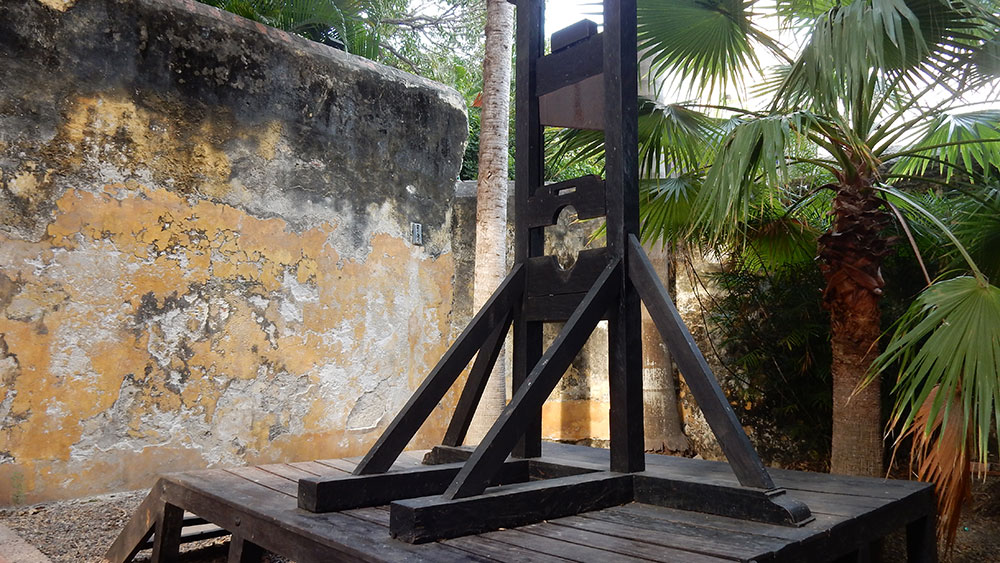 … which was, sadly, quite boring. Our guide tried to tell us about the place, and its significance at the time of the Inquisition, but a second group, who were right behind us, kept piling into each room while we were still there, and their guide started talking at the same time as ours, so it was all a bit of a dog’s dinner. Unfortunately, most of the information boards were only printed in Spanish, so there wasn’t a lot of interest to be gleaned from them. Three rather pitiful examples of torture implements, and a guillotine and noose in an outdoor yard went some way towards livening the visit up, but even then, maybe I was expecting something more akin to the London Dungeon – so I was always going to be underwhelmed.