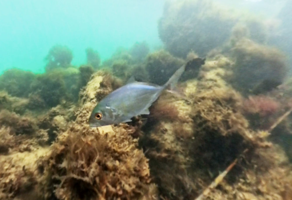 After being there for some while we went for a walk up the beach and identified an area of sea close to a clump of rocks, where the water also looked clear. Closer examination with snorkel and goggles revealed lots of interesting fish, and I’m hoping I managed to get some good underwater video footage.