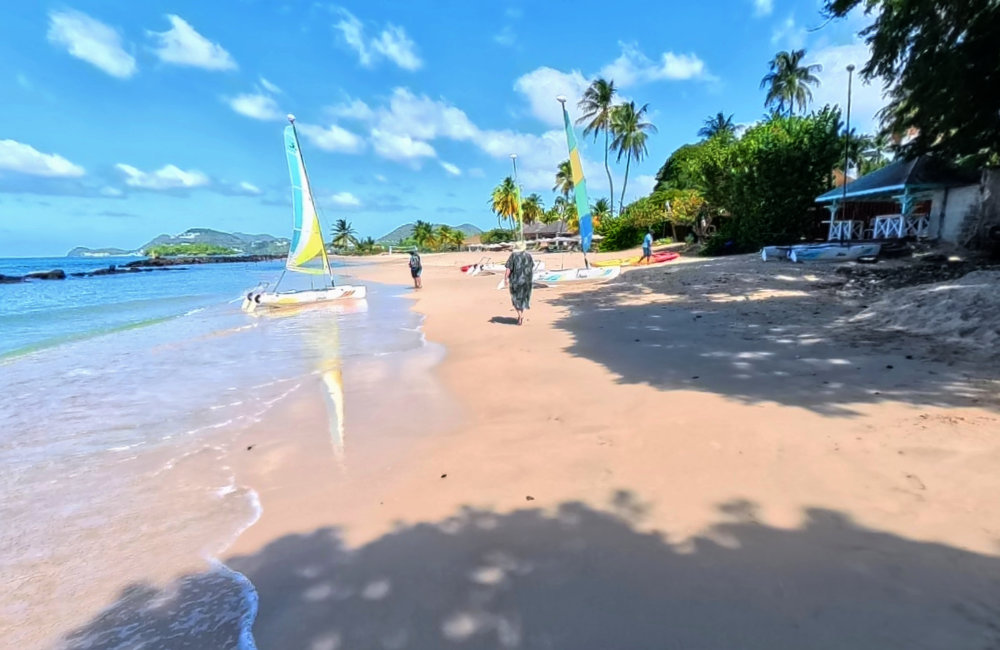 We had originally planned to go on the jungle aerial tram excursion but it got cancelled because of storm damage. So we did what we’ve done on our last few visits; walked to Viggi beach, armed with sausage sandwiches, bananas and muffins for lunch.