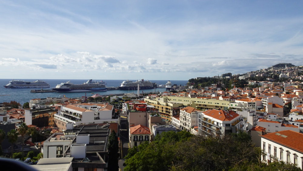 The good news was that the queue moved reasonably quickly, with a new car arriving every couple of minutes or so, and soon we were on our way to Monte, sharing a small space with two other couples, enjoying the extensive views across the city and the port.