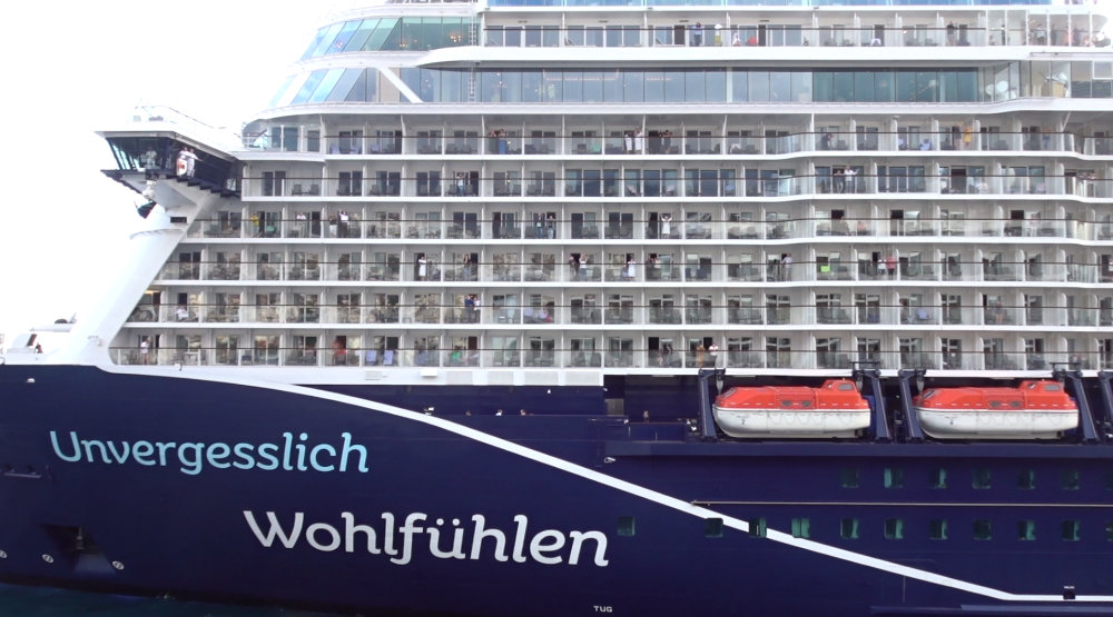 Leaving port was actually very entertaining. We’d been parked opposite a large German ship (‘Mein Shiffe’) all day. In fact, once we had got back to the cabin, I’d had a bit of a nap and Tracey had been to lunch (bringing me back some Mr Whippy Ice Cream from the Lido… because she loves me…), we sat on the balcony looking across to the other ship with our binoculars, in particular, checking out the expensive-looking suites situated on the highest level. When it came time to leave, our Captain (who I’m sure knew the captain of the German vessel very well), instructed us to wave our towels from the balconies in farewell, as he played ‘Rule Britannia’ over the PA system at full volume. Both ships sounded their horns in unison and folks waved and cheered good-naturedly – from both ships, I should add.