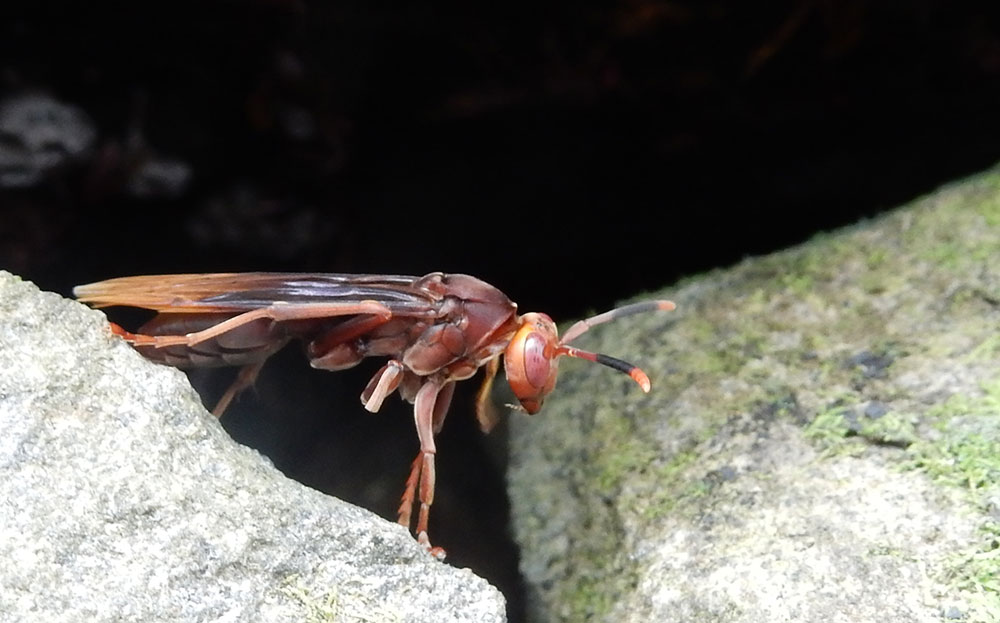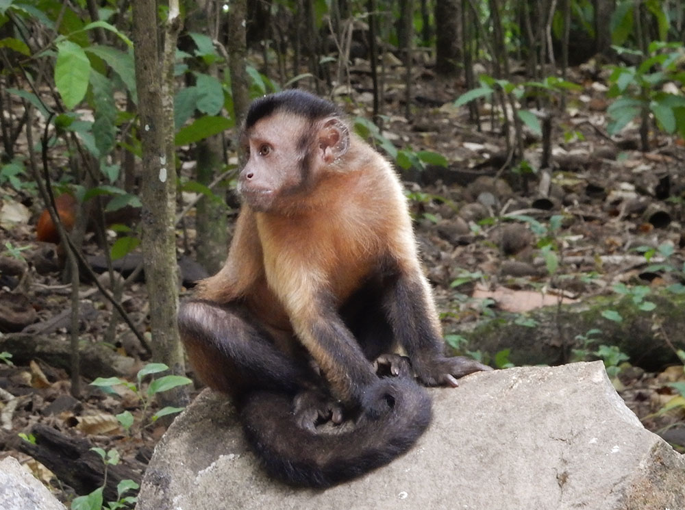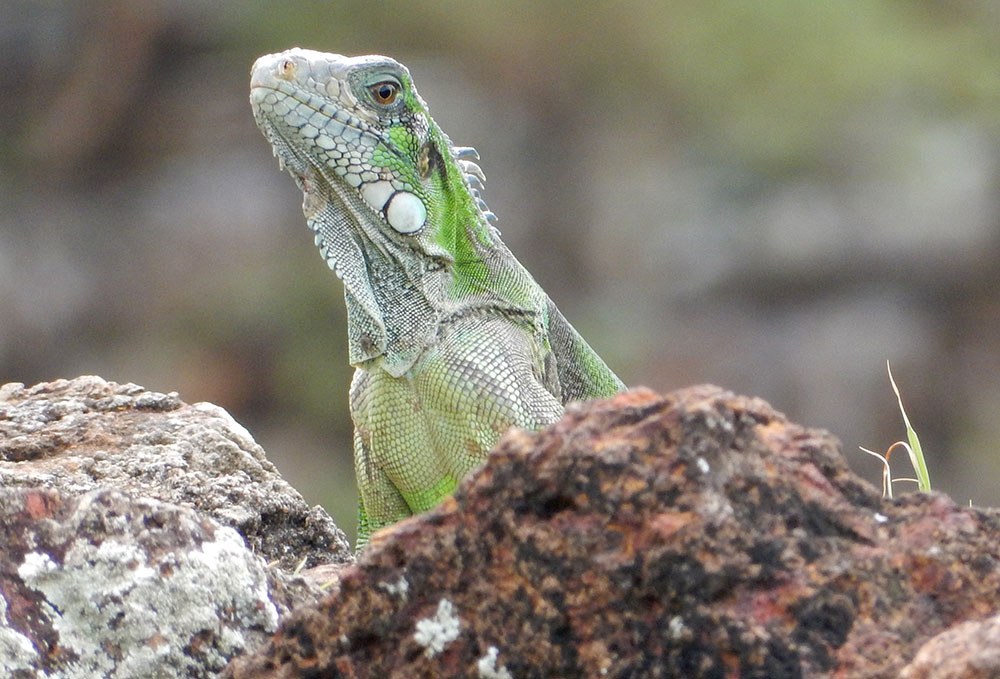 On our walk, we saw stripey Geckos and lots of Agouti (also known as Palm Rats) rummaging in the tangled undergrowth. We were also fascinated by a wasps nest in one of the walls. I say wasps; they were unlike any wasps that I’ve ever seen, looking quite ugly and fierce, and definitely not to be messed with. A little further along, we encountered turtles in the shallow waters, sheltered from the strongest of the currents, and as we turned off the perimeter track to join another path that would lead us up to the centre of the island, we found a group of small monkeys entertaining passengers for scraps of food.