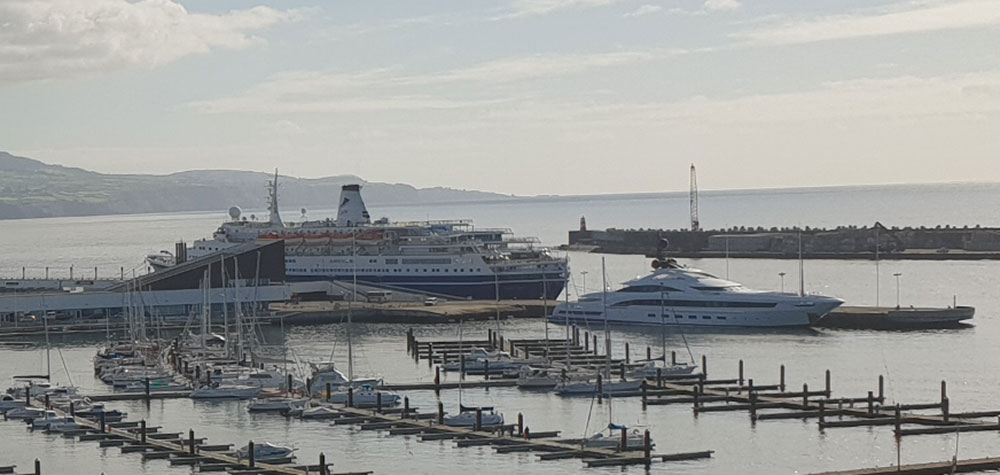 Back in the port, we paused to enjoy a drink in one of the marina-side cafes before heading back to the ship to gorge on our fast, freely-available, phone-contract internet access. Bliss!