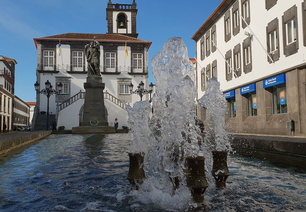 We walked as far as the ornate gates of the Town Hall, took a few photographs and climbed to the top of the clock tower, from where we had some magnificent views across the rooftops of Ponta Delgada.