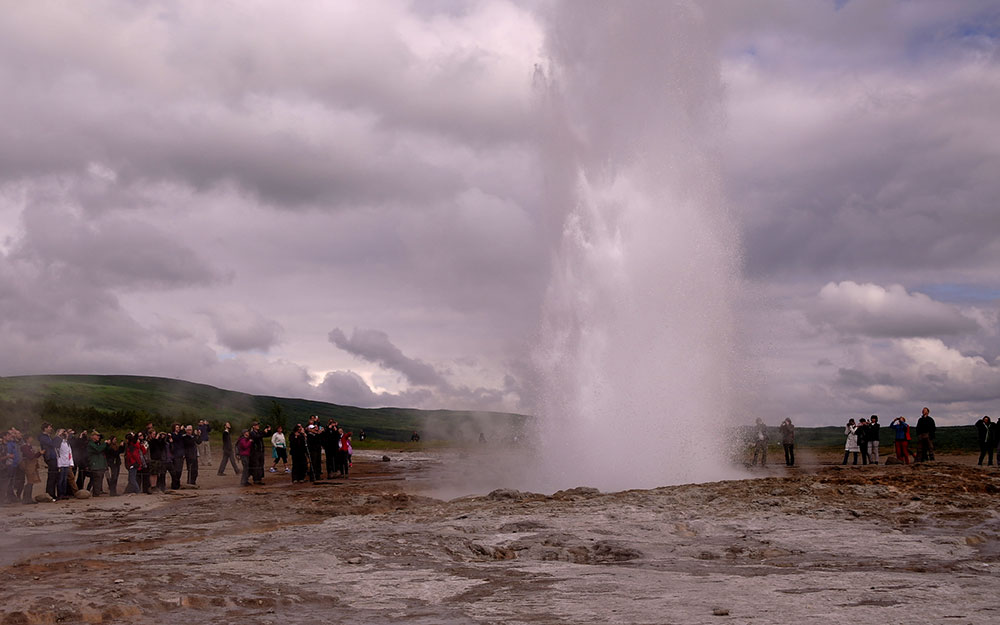 It didn’t disappoint; the geyser dutifully erupted much to the delight of the throngs of visitors. Other springs bubbled away and cast clouds of steam up into the atmosphere, but only Strokkur did the shooty-up thing.